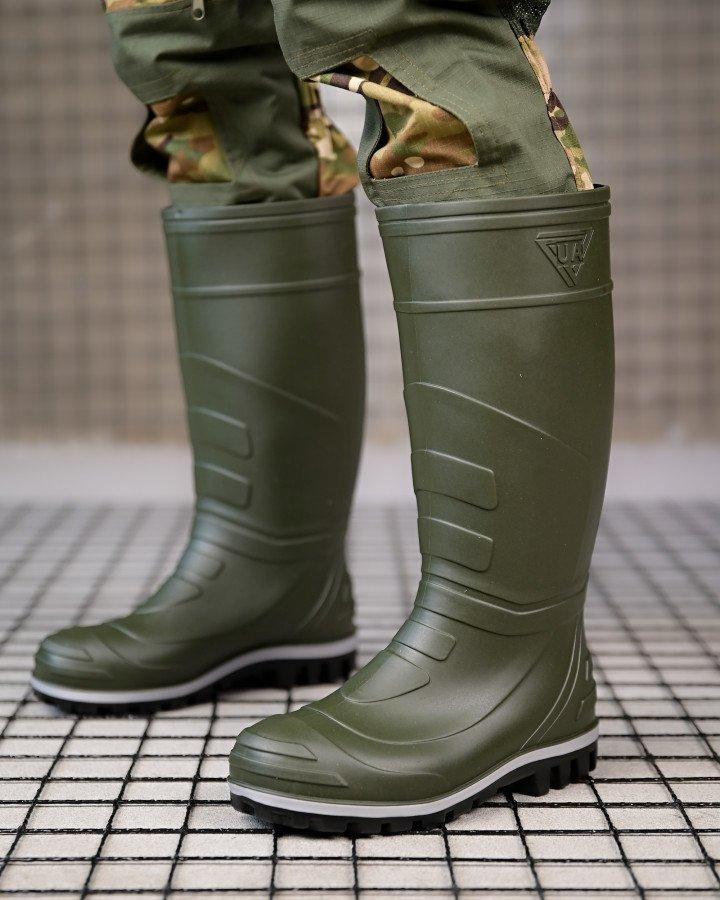 Чоловічі резинові сапоги олива – надійне взуття для будь-яких погодних умов. Виготовлені з якісної водонепроникної гуми, вони захищають ноги від вологи, бруду та холоду. Ідеально підходять для риболовлі, полювання, роботи на господарстві, у саду чи на дачі, а також для повсякденного використання в дощову погоду.