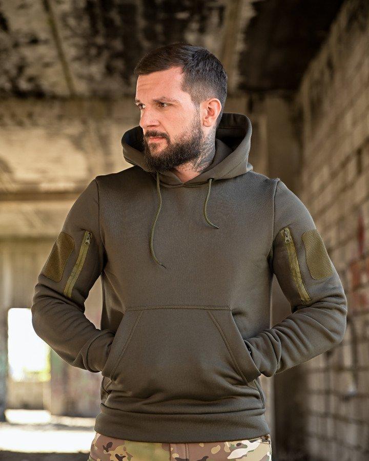 Тактична худі TERNOVA у кольорі олива (Авiацiя) — це зручний і практичний верхній одяг для повсякденного носіння, військових тренувань, тактичних завдань та активного відпочинку. Виготовлена з міцного матеріалу трьохнитка на флісі, худі забезпечує тепло, комфорт і довговічність.
